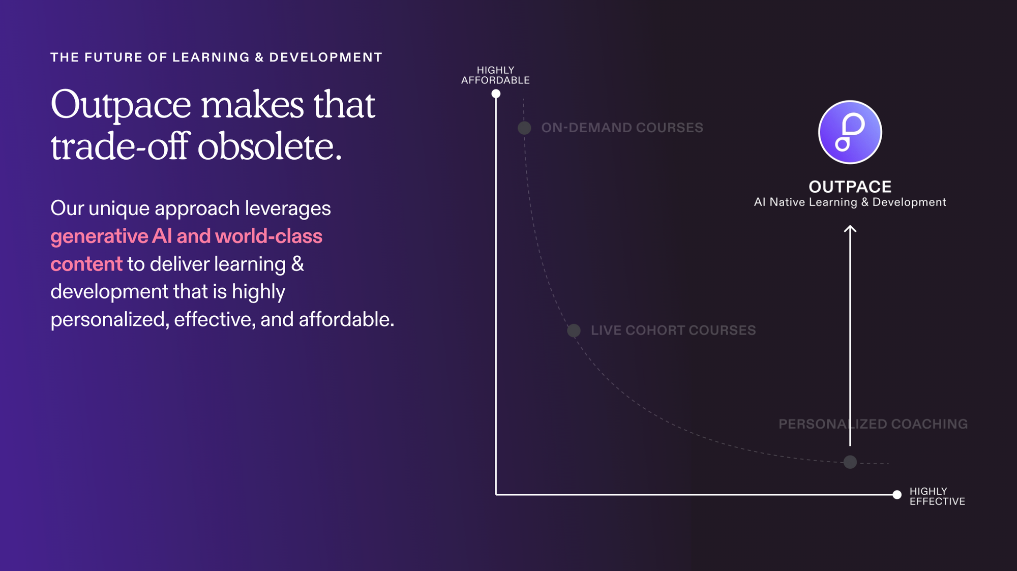 Our goal is to make that trade-off obsolete. We use generative AI and incisive content to deliver learning & development that is highly personalized, effective, and affordable.